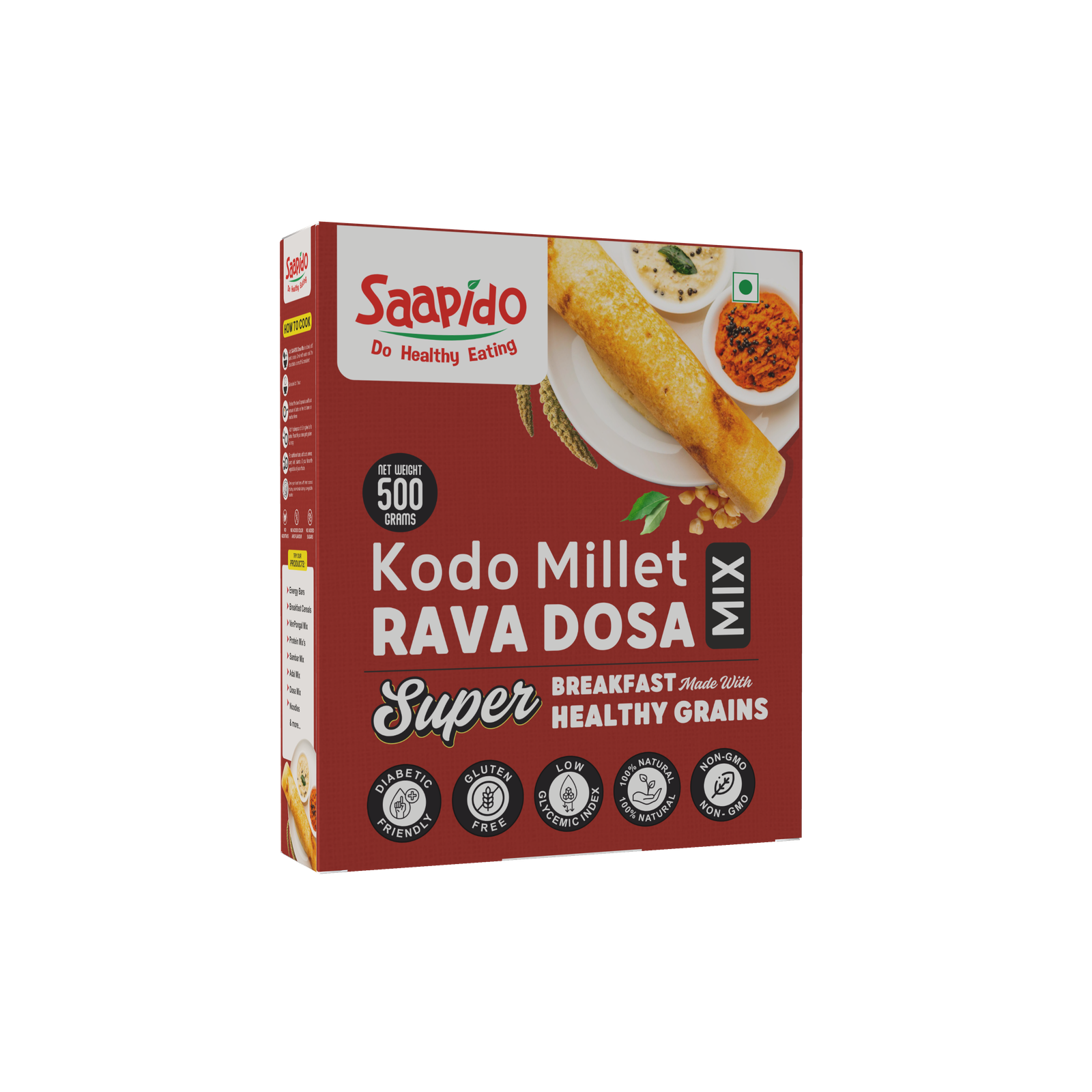 SAAPIDO Kodo Millet Rava Dosa Mix is your kitchen hero, offering a quick and hassle-free breakfast option you won't want to go a day without. It's a time-saver that ensures a nutritious and hot breakfast for your entire family.