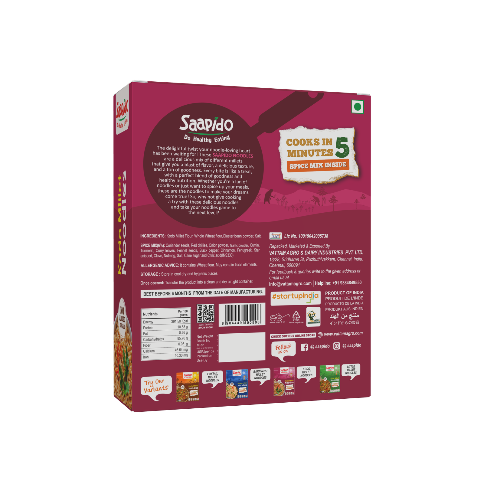 Vatsan Healthy Pearl Millet Pasta