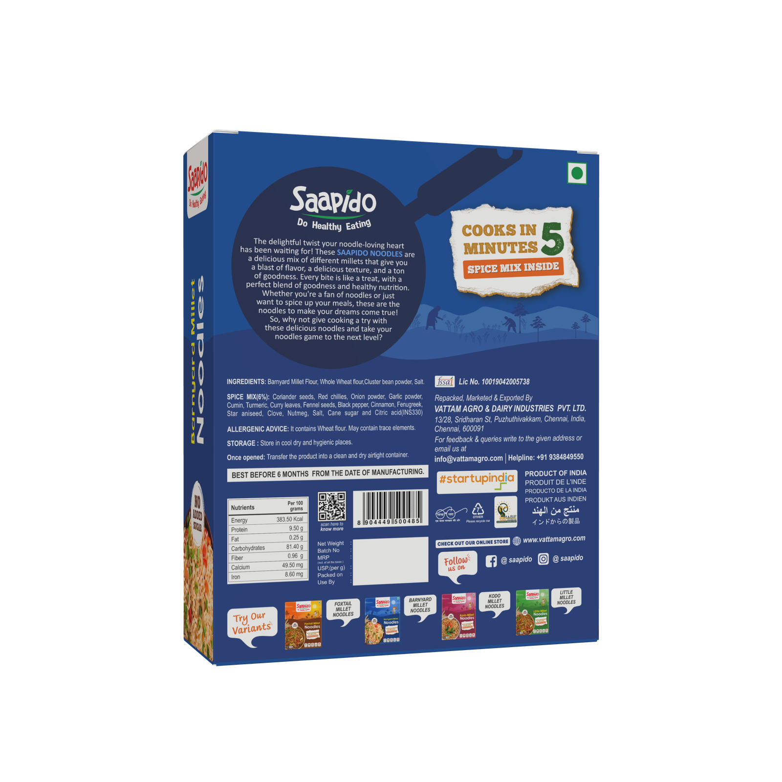 Our Pearl Millet Pasta is not only healthy and tasty but also quick to cook, ready in less than 10 minutes. Whether you need a light nutritious dinner, a snack to curb mid-meal hunger at work, or a quick breakfast, SAAPIDO Pearl Millet Pasta is the perfect solution. This healthy pasta is suitable for all age groups, including kids and adults. It strikes a perfect balance between health and taste with its natural ingredients, pleasing your taste buds.